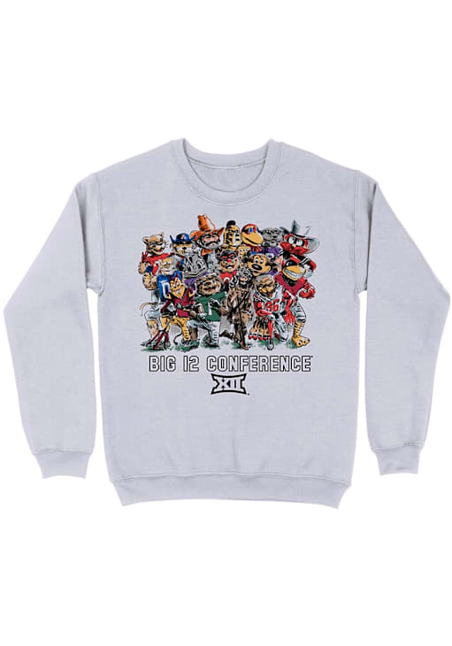 Gear up for the ultimate game day experience with this remarkable Big 12Mens Grey Conference Mascot Lineup Crew Sweatshirt! Designed with the true fan in mind, this Long Sleeve Crew Sweatshirt features a screen print graphic on front chest. Stay warm and comfortable with this Mens Big 12 Crew Sweatshirt.