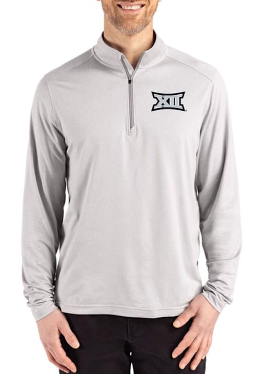 Embrace the warmth and showcase your pride with our Big 12 Long Sleeve Qtr Zip Pullover. This Mens Ash Coastline Long Sleeve Pullover offers a team logo on left chest for the perfect combination of comfort and style. Elevate your everyday look with this must-have Big 12 Long Sleeve Qtr Zip Pullover.