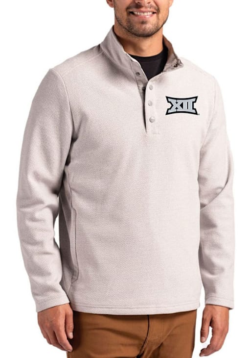 Embrace the warmth and showcase your pride with our Big 12 Long Sleeve Qtr Zip Pullover. This Mens Ash Hunts Point Long Sleeve Pullover offers a team logo on chest for the perfect combination of comfort and style. Elevate your everyday look with this must-have Big 12 Long Sleeve Qtr Zip Pullover.